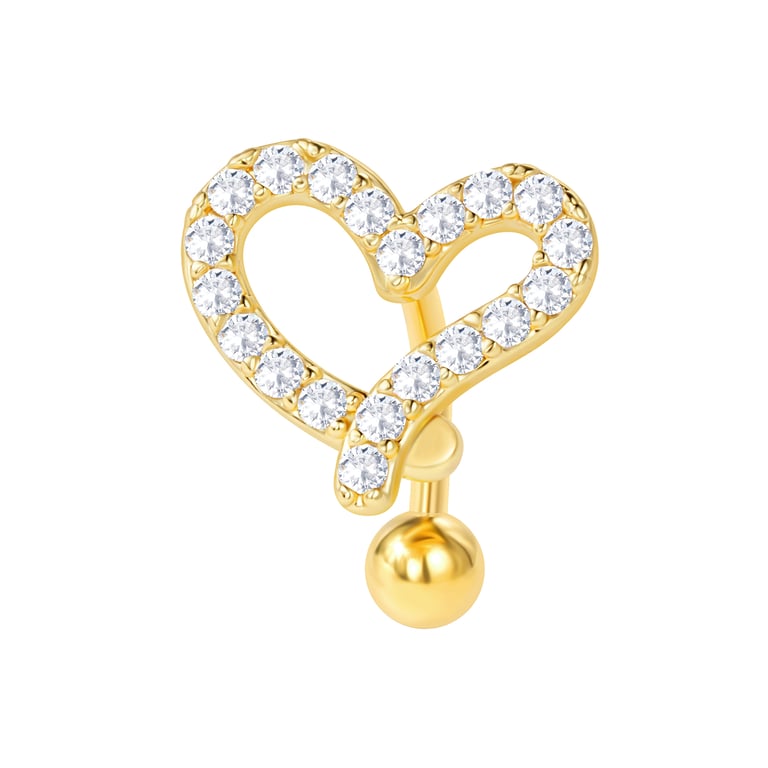 Each stone adds a touch of sparkle to create a stunning, radiant heart that is delicately set on a base of real gold plating. This elegant piece is perfect for those who seek a refined, luxurious accessory for their piercing.